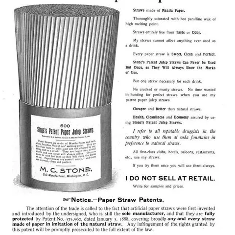 Di tahun 1895, sedotan kertas ciptaan Stone mulai dipasarkan secara publik melalui iklan.
