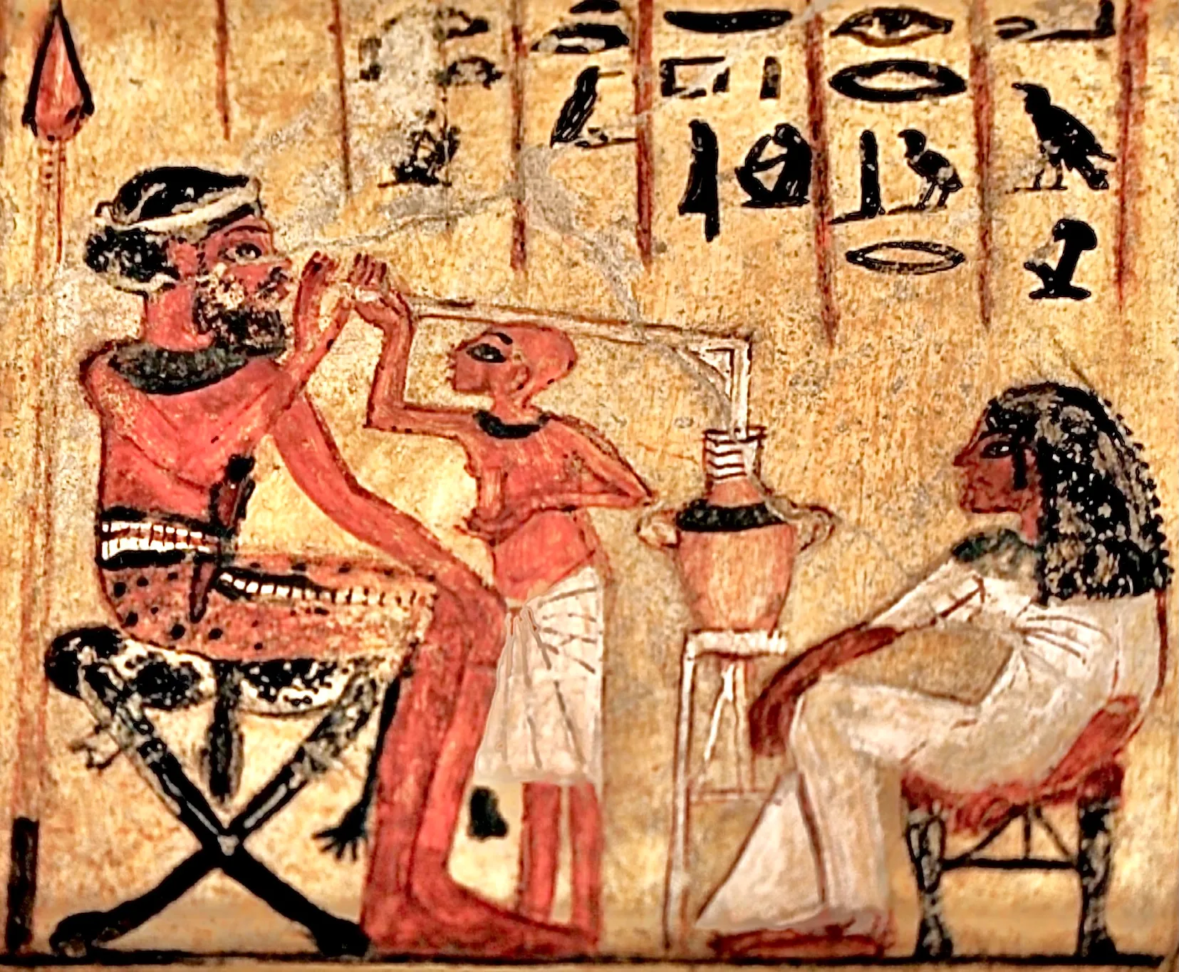 Lukisan kecil ini—dibuat lebih dari 3.300 tahun lalu—penuh dengan detail menarik. Sang tentara bayaran, yang dapat dikenali sebagai orang Suriah dari pakaian dan gaya rambutnya, menikmati minuman segar di tempat yang tampaknya merupakan kedai minum Mesir Kuno.